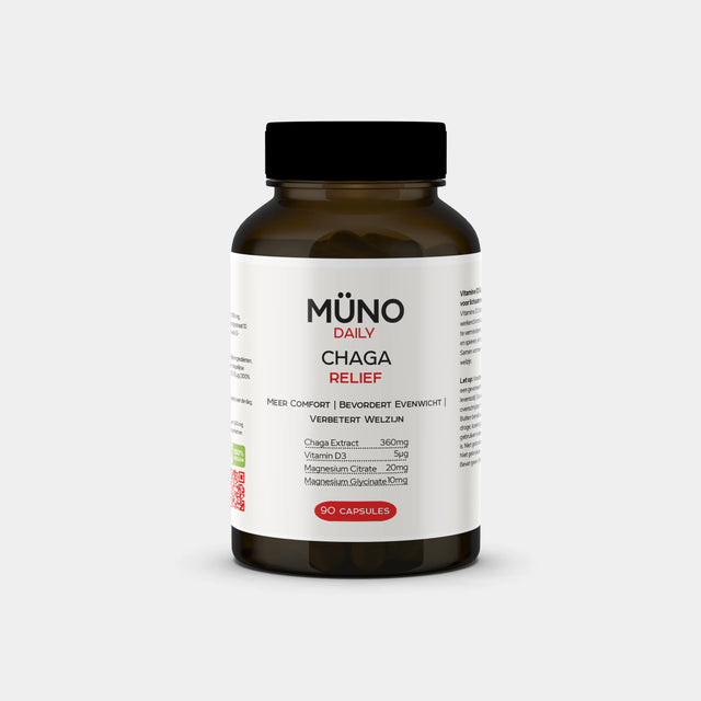 De Chaga mushroom is een eeuwenoude krachtbron die in de moderne tijd zijn waarde meer dan ooit bewijst. Of je nu kiest voor Chaga capsules, poeder of thee, deze bijzondere paddenstoel blijft een symbool van balans, vitaliteit en natuurlijke veerkracht. Met Müno Relief – Chaga haal je die kracht rechtstreeks in huis — in een vorm die perfect past binnen een gezonde, bewuste levensstijl.